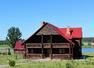 Расположен в 150 метрах от озера. Территория вокруг дома большая. Возле дома тротуарные дорожки, барбекю – беседка. Дом построен из экологически чистых материалов.